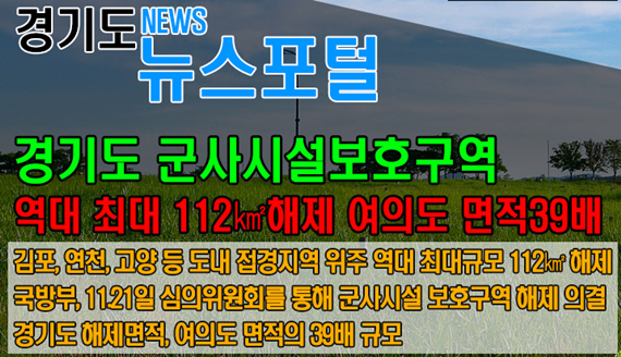 김포, 연천, 고양 등 경기도내 112㎢(3,314만평) 규모의 토지가 군사시설보호구역에서 해제된다. 이는 여의도 면적(2.9㎢)의 약 39배에 달하는 규모로, 그간 중첩규제로 고통 받던 접경지역 주민들의 삶의 질 개선에 긍정적 영향을 미칠 것으로 기대되고 있다.