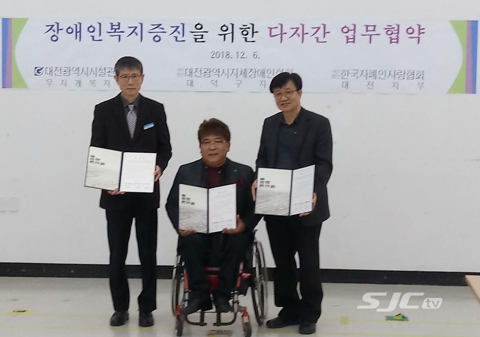 대전시설관리공단 무지개복지센터(센터장 한만대)는 6일 대전광역시지체장애인협회 대덕구지회(지회장 박찬진) 및 한국자폐인사랑협회 대전지부(지부장 이호희)와 다자간 업무협약을 체결했다.