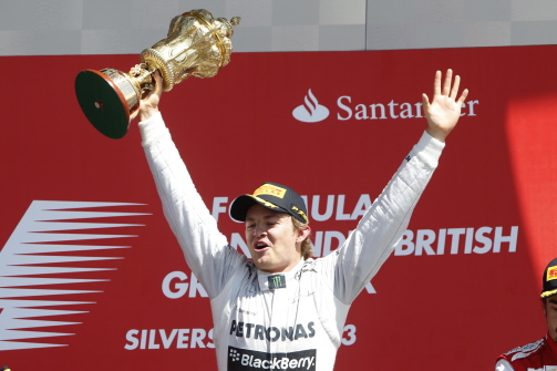 로즈버그는 지난달 30일 영국 실버스톤 경주장에서 열린 2013 F1대회 8회전인 영국대회에서 5.901km의 경주장 52바퀴를 1시간32분59초456으로 달려 가장 먼저 결승선을 통과했다.