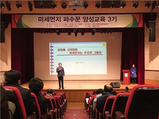 평택시(시장 정장선)는 지난 10일 북부문화예술회관 소공연장에서 미세먼지 저감과 대응을 위한 ‘미세먼지 파수꾼 양성교육’을 실시했다.