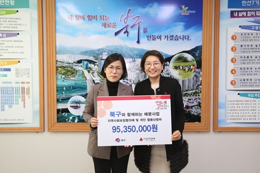 부산 사회복지공동모금회는 지난달 22일 북구 저소득 가구 월동난방비 지원사업비 4,460만원과 지역사회보장협의체 민관협력사업 공모사업비 5,075만원을 북구청에 기탁하였다.