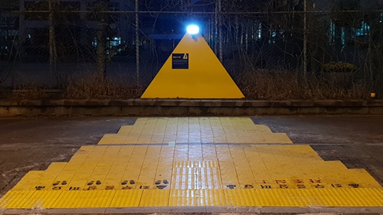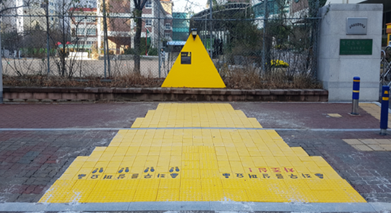 노란 카펫은 바닥체에 설치, 시공되어 운전자, 보행자에게 효과적으로 전달된다.