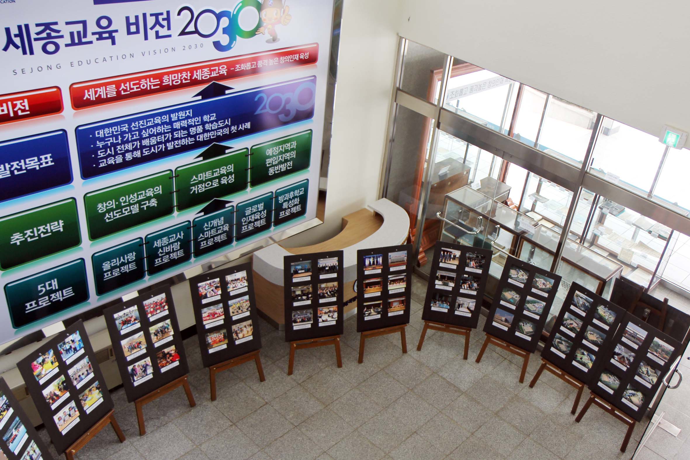 세종특별자치시교육청(교육감 신정균)은 청사 중앙현관에서 ‘과거와 현재, 미래 교육기록 한자리에’라는 주제로 출범 1주년 기념 세종교육 역사기록 전시회를 갖고 있다.