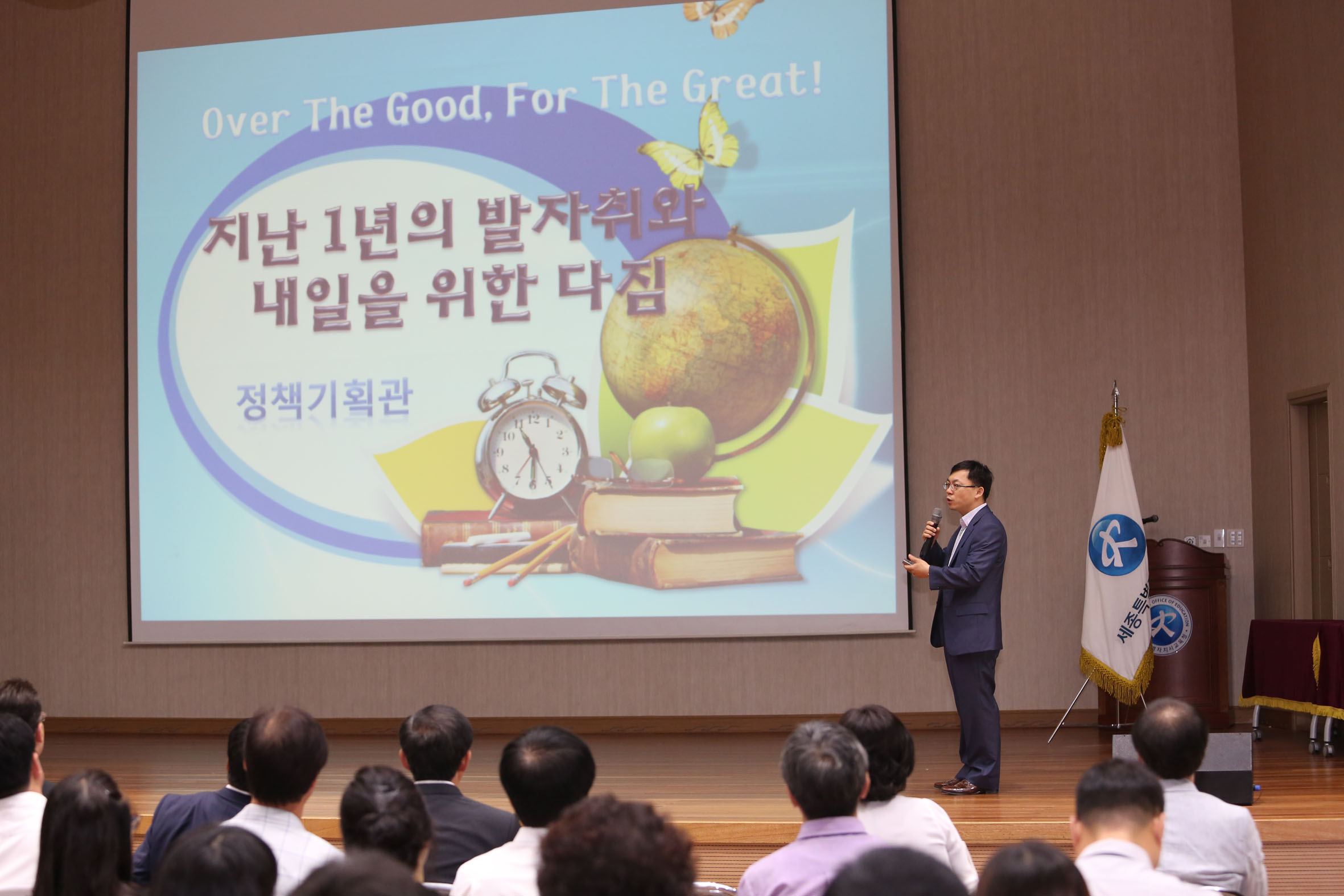 이 자리에서 전진석 정책기획관은 출범과 동시에 세종교육 비전 2030 선포, 세종시 초중등교육 중장기발전 방안을 수립하는 등 세종교육의 기반을 다졌다는 자평과 함께, 미래의 위대한 세종교육 100년을 향한 다짐을 보고했다.