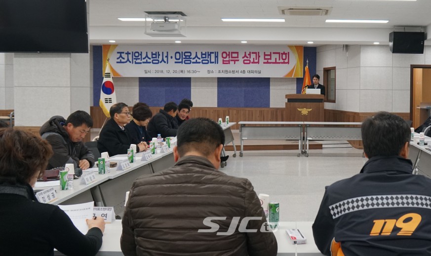 조치원소방서(서장 김수환)가 20일 소방공무원, 의용소방대원 등 26명이 참석한 가운데 올해 조치원소방서 의용소방대 업무성과 보고회를 개최했다.