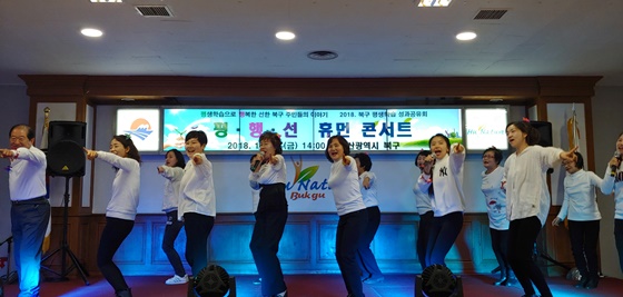 부산 북구 정명희 구청장은 18일 작은 배움의 날개짓으로 큰 나눔을 이루자는 희망을 담아 ‘배움이 나눔이 되는 희망나비’를 주제로, 평생학습에서 갈고 닦은 다양한 재능을 지역주민들과 함께 재능 나눔 활동과 특화사업의 소개되었다.