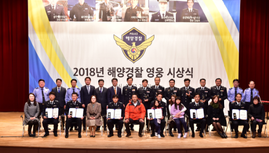 해양경찰청 조현배 청장은 에쓰-오일 오스만 알 감디 대표 그리고 한국사회복지협의회 서상목 회장 외 수상자와 가족, 직원 등 300여 명이 참석한 가운데 21일 오전 해양경찰청 대강당에서 ‘2018년 영웅 해양경찰 시상식’을 가졌다.