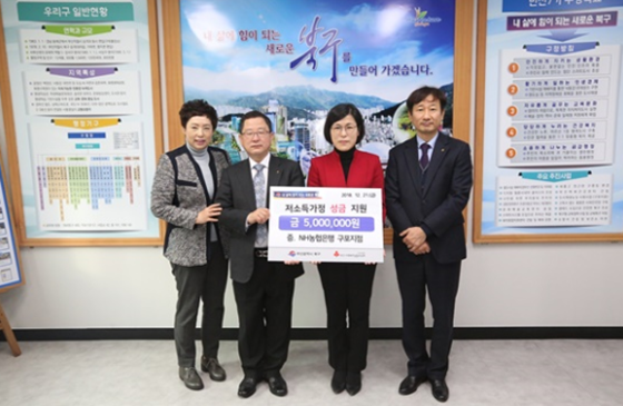 농협은행 구포지점은 북구 저소득가정을 위해 2016년부터 매년 북구청에 성금을 맡겨왔으며, 이웃사랑 나눔실천에 앞장서고 있습니다.