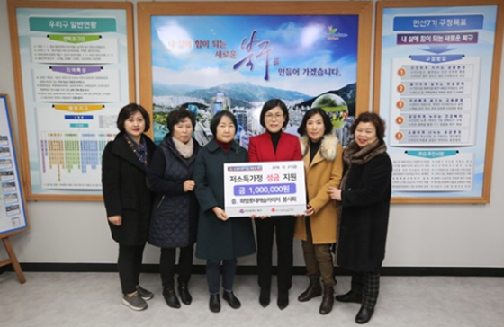 부산 북구 화명롯데캐슬카이저 봉사회(회장 신금숙)는 지난 21일 저소득가정 지원을 위해 성금 100만 원을 북구청에 전달했다.