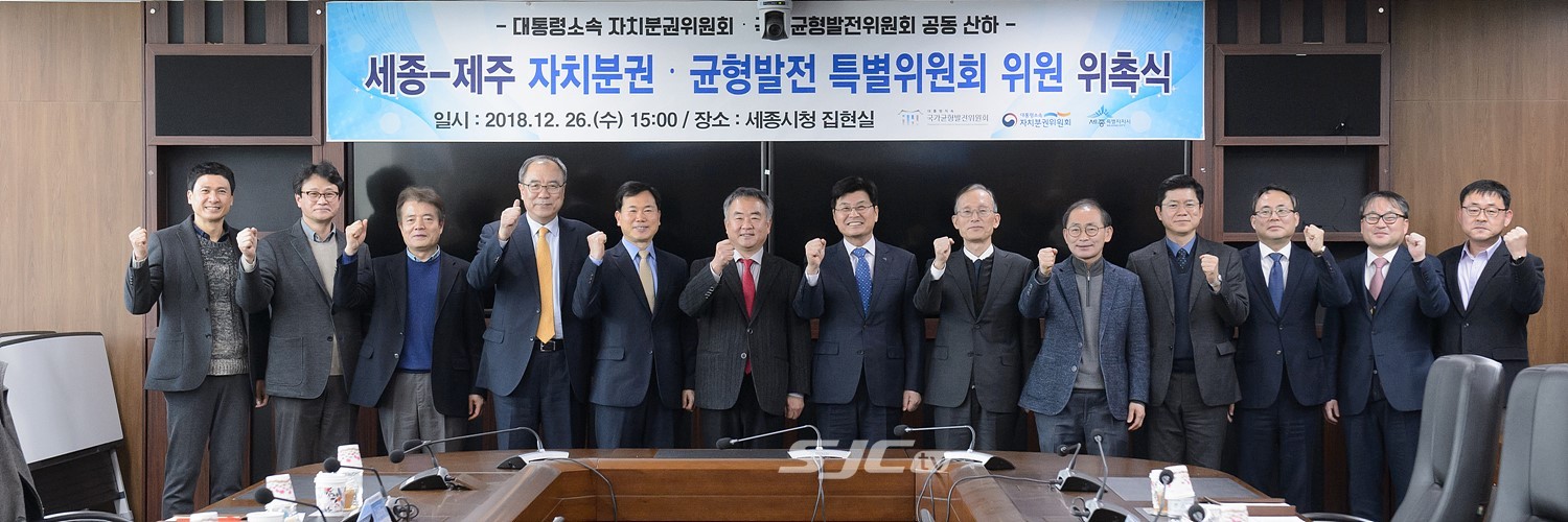 세종-제주 특위는 지난해 11월 10일 자치분권원회, 국가균형발전위원회, 세종시, 제주도가 체결한 자치분권 실현을 위한 공동의 노력을 다짐하는 업무협약에 따라 구성됐다.