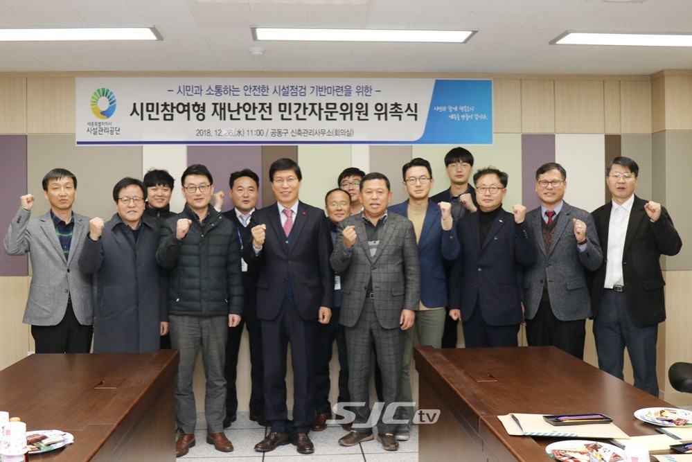 세종특별자치시시설관리공단(이사장 신인섭)은 26일 세종공동구 회의실에서 공단에서 관리하는 시설물의 안전성 강화 및 보다 질 높은 시민 편의성 제공을 위해 관련분야 대학교수 및 전문가, 시민으로 구성된 「시민참여형 재난안전 민간자문위원」을 위촉했다.