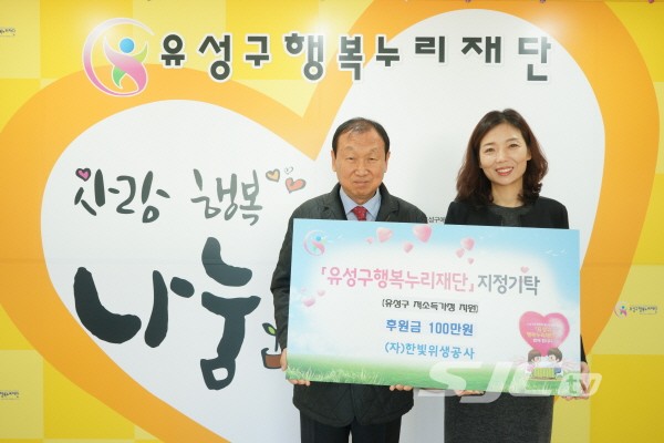 유성구행복누리재단은 27일 유성구 장대동에 위치한 한빛위생공사(대표 이규호)로부터 유성구관내 저소득층을 위한 지원금 100만원을 기탁받았다.