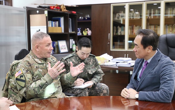 이날 정 시장은 “추운 날씨에 시청 방문에 환영합니다.”라고 미8군 사령관을 환영했다.