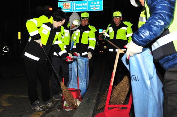 부산 금정구 정미영 구청장은 새해에도 현장행보로 업무를 시작했다. 정미영 구청장과 직원들은 새해를 맞아 2일 새벽 부산대학교 정문에서 도시철도 부산대역 3번 출구까지 거리를 함께 청소하며 현장의 목소리를 듣고 환경미화원들의 노고를 격려했다. 금정구는 올 한해도 현장에서 답을 찾는 현장행정을 지속해나갈 계획이다.
