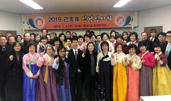부산 영도구 동삼1동 통장협의회( 회장 이덕우)가 2019년 기해년 신년 인사회를 부산시의회 도시 안전위원장, 영도구의원, 유관단체장 및 회원, 지역원로 100여 명이 참여한 가운데 1월 9일 동삼1동 행정복지센터 2층 다목적실에서 개최했다.