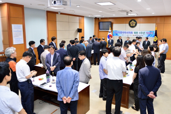 이날 행사는 국민의례, 개원 1년간의 성과 동영상 감상, 유공공무원 표창, 의장님 인사말씀, 축하떡 절단, 건배제의(김선무, 강용수 부의장) 순으로 진행됐다.