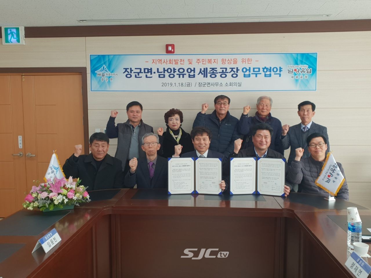 세종특별자치 장군면(면장 임윤빈)이 남양유업 세종공장(공장장 정재연)과 지난 18일 면사무소에서 업무협약을 맺고 지역사회발전 및 주민복지향상을 위한 공동협력을 약속했다.