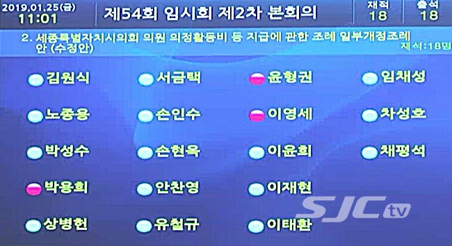 이날, 세종시의회 의원 의정활동비 지급 수정안건에 대해 18명의 시의원 중 윤형권, 이영세, 박용희 의원 3명이 반대했고 나머지 15명의 의원이 찬성했다.