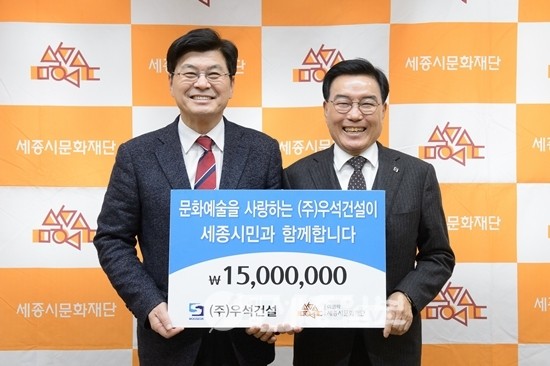 우석건설(대표 박해상)은 25일 세종시문화재단(대표이사 인병택)에 문화예술후원금 1천500만원을 전달했다.