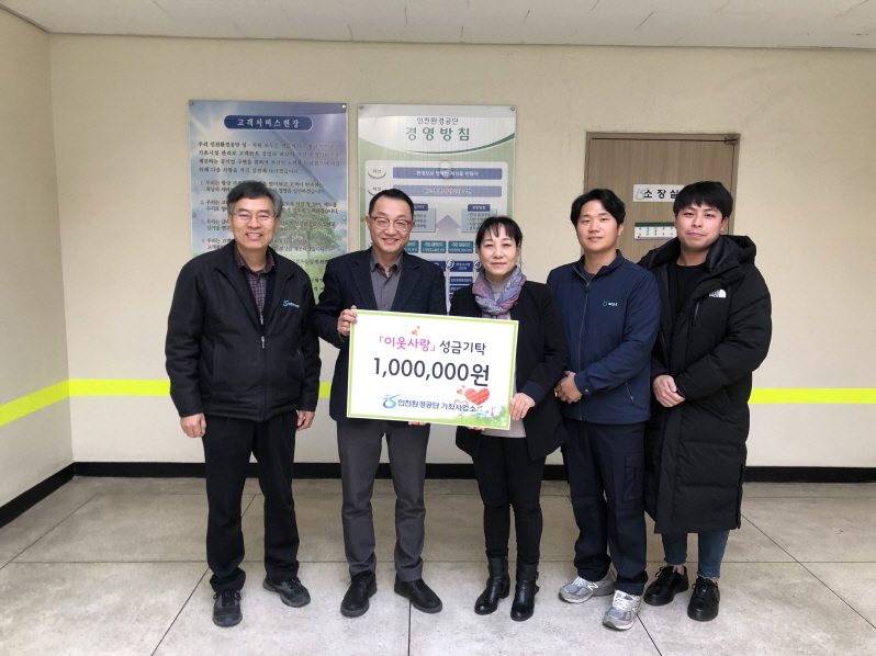 인천환경공단(이사장 이주호)은 28일 관내 사회복지시설을 방문하여 설명절 준비에 필요한 성금과 생필품(350만원 상당)을 전달하였다.