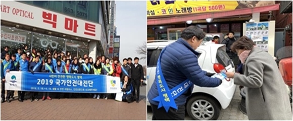 이날 국가안전대진단 시민홍보로 겨울철 난방기구 사용에 따른 화재 예방과 안전 신문고 활용방법 및 해빙기 재난 취약시설 안전점검 등 홍보 활동을 하면서 시민들에게 전단을 건네주면서 안전의식을 고양 시켰다.