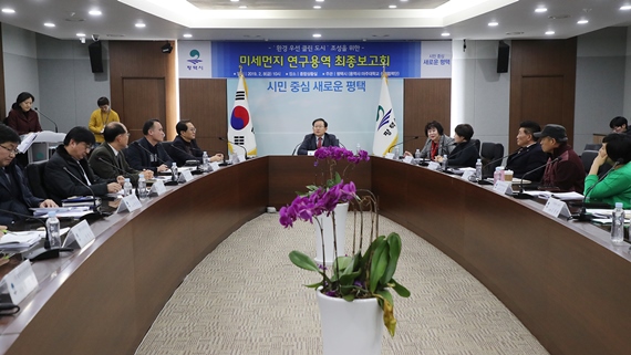 평택시가 8일 종합상황실에서 시민, 환경단체, 관련기관 관계자 등 70여 명이 참석한 자리에서 미세먼지 연구용역 최종보고회를 열었다.