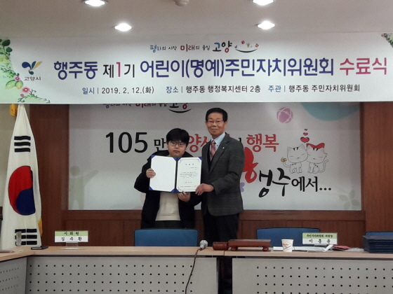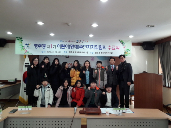 고양시 덕양구 행주동 주민자치위원회는 지난 12일 주민자치 꿈나무 육성 프로젝트의 일환으로 ‘행주동 제1기 어린이 (명예)주민자치위원 수료식’을 개최했다.