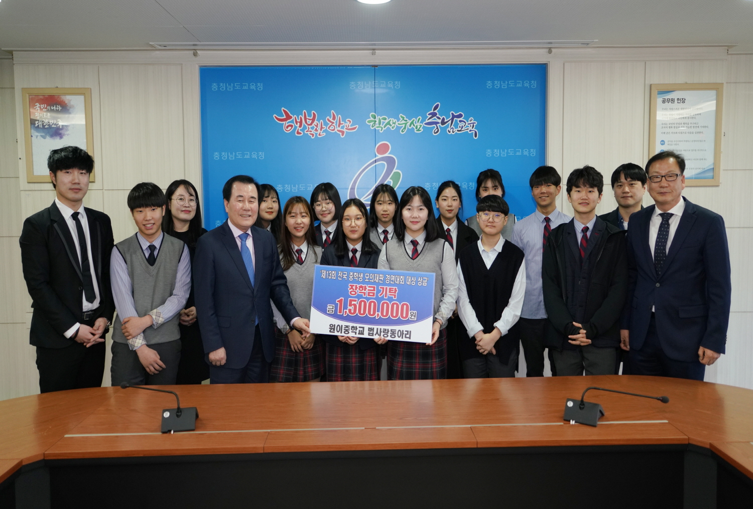 - 태안 원이중 법사랑동아리 학생들 상금 150만 원 도교육청에 전달