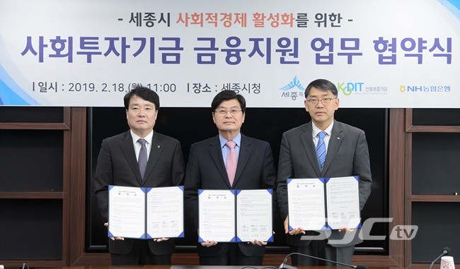 신용보증기금은 세종시 사회투자금에 대해 100% 신용보증하고, 시금고인 NH농협은행은 대출업무 등 금융서비스를 지원하기로 약정했다.