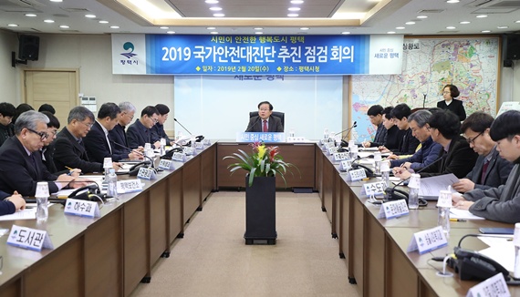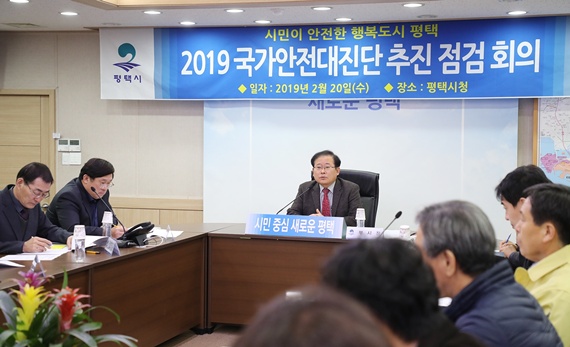 평택시는 국가안전대진단을 맞이하여 지난 20일 재난안전상황실에서 이종호 부시장외 관계자 50여 명이 참석한 자리에서 '2019년 국가안전대진단 추진점검회의'를 열었다.