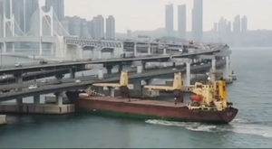 러시아 화물선 시그랜드호(5,998ton)가 광안대교를 추돌하는 사고가 2월 28일 발생하여 남구 용호동 방면의 49호 광장 진입 램프구간 하층 강박스거더(Steel Box Girder)가 파손되는 피해를 입었다.