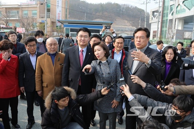 한국당 나경원 원내대표 '공주보 방문' 열띤 취재 열기