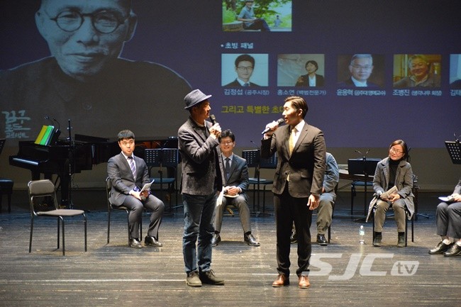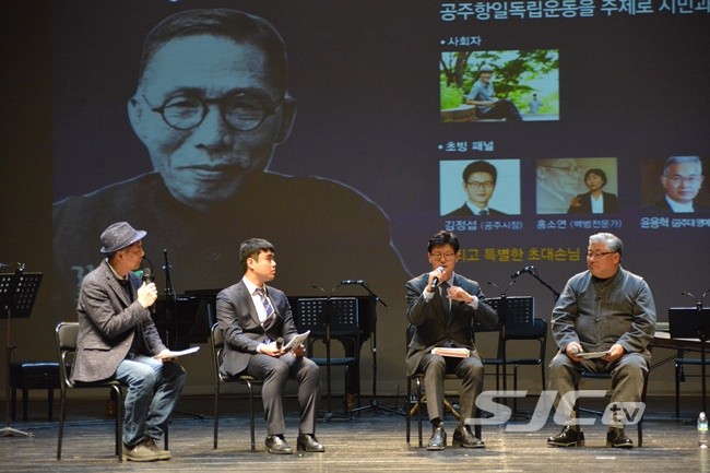 공주시 특별기획 공연 '김구의 공주아리랑' 1부가 5일 오후 7시 30분 문예회관 대공연장에서 독립유공자 후손, 시민과 함께 공주의 독립운동 역사를 주제로 토크 콘서트가 진행됐다.