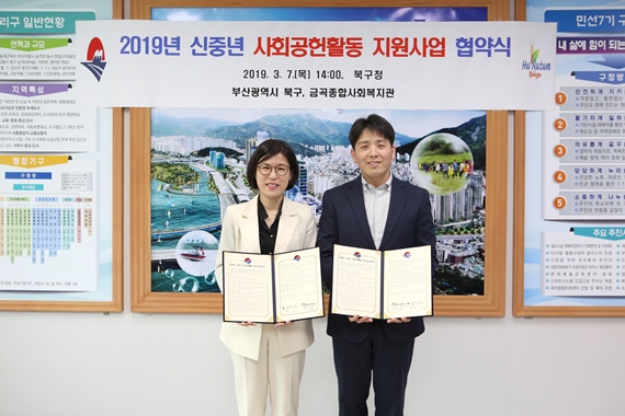 부산 북구 정명희 구청장이 ‘신중년 사회공헌활동 지원사업’의 추진을 위해 금곡종합사회복지관과 3월 7일 협약을 체결하고 퇴직한 전문인력을 활용한 사회서비스 일자리 사업을 운영한다고 밝혔다.