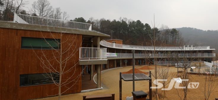 ▲ 세종시 반곡동에 설립 된 전국 최초 공립단설 솔빛숲유치원 전경. (사진=세종 TV)