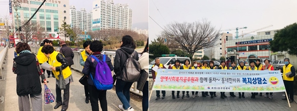 이날 지역주민에게 복지사각지대와 자원 발굴을 위한 안내지를 나누어 주며 주변의 어려운 이웃을 발견하면 동주민센터나 보건복지 콜센터로 제보 부탁드린다고 당부하였다.