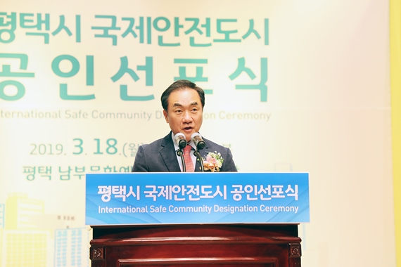 평택시는 18일 ‘평택시 국제안전도시 공인 선포식’을 개최했다.