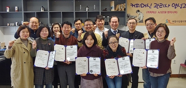 부천시 인생이모작지원센터는 3월 21일 커피머신관리사 1급 양성과정 수료식을 가졌다. 이번 과정은 지난 1월 22일부터 8주간 커피머신의 종류 및 보일러의 분류, 커피 머신 설치에 필요한 요건 및 설치 방법 등 실습 위주로 진행됐다. 또한 교육생 전원이 커피머신관리사 1급에 응시해 자격증을 취득하는 결과를 얻었다.