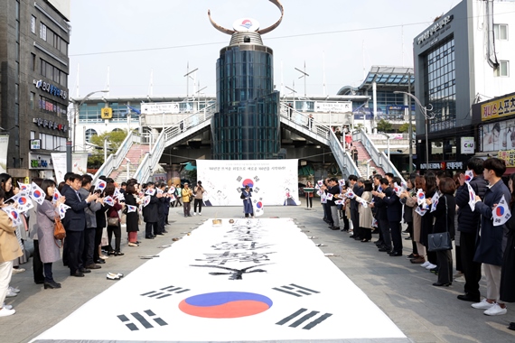 조례에 앞서 정명희 구청장은 100년 전 3.1만세운동이 일어났던 역사를 기념하기 위해 구포시장부터 만세거리를 거쳐 구포역까지 도보로 이동하며 독립운동의 정신을 기리고 북구의 새로운 100년을 다짐했다.