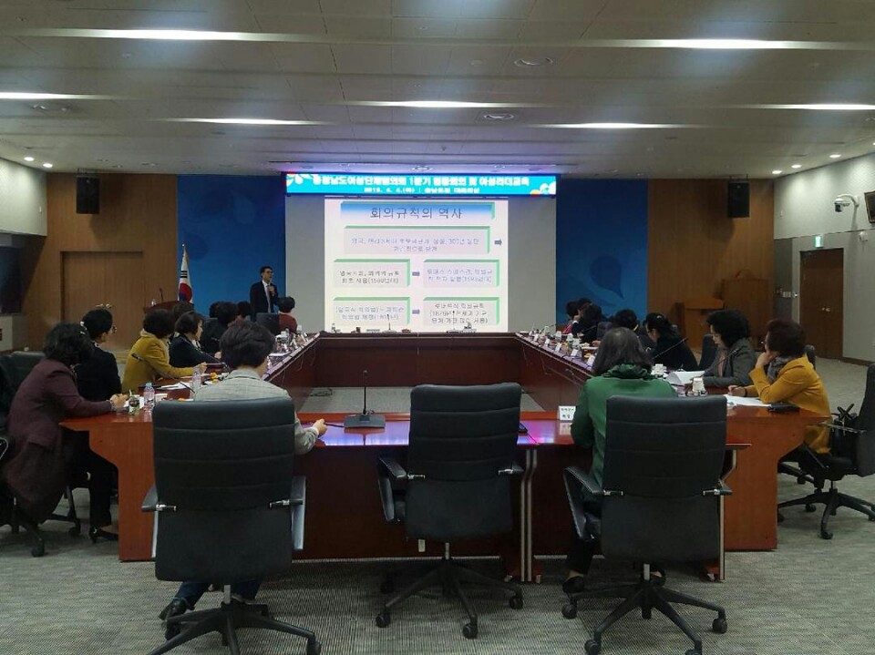 충청남도여성단체협의회(회장 임춘숙)는 4일, 충남도청 대회의실에서 충남도협의회단체장 및 각 시군여성협의회장 등이 참석한 가운데 전국매일신문 충남본부장 겸 (사)한국청년회의소 연수원 한상규 교수를 초청, ‘지방자치시대에 걸맞는 의회식 회의진행방법’이란 주제로 여성리더십 강좌를 실시해 호응을 얻고 있다.