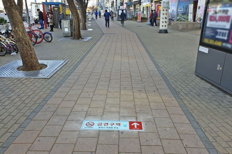 그러나 버스정류장 주변 흡연으로 인한 흡연자와 비흡연자 간 갈등 사례가 빈번하게 일어나고 있어, 간접흡연 피해와 흡연민원을 방지하고자 이용객이 많은 버스정류장 인근 바닥에 금연안내판을 새로 설치했다. 특히 기존 알루미늄 노면스티커 대신 내구성이 좋은 매립식 금연안내판을 설치해 금연구역 범위를 정확히 알 수 있도록 했다.