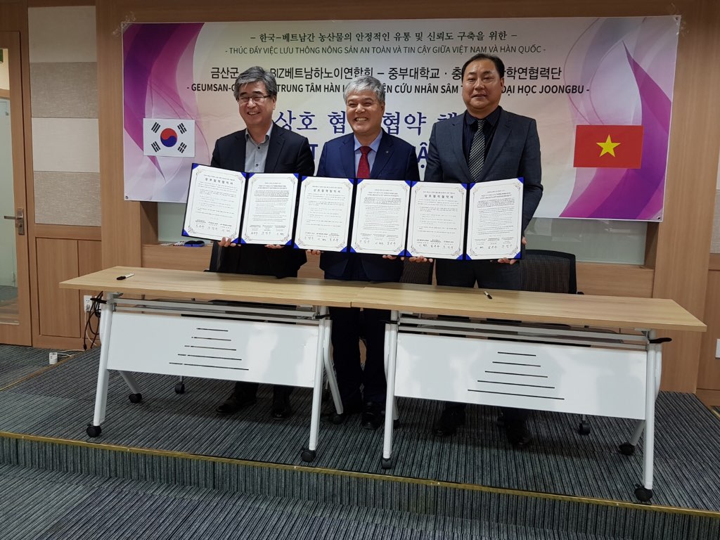 한편, 현재 베트남에는 금산지역 8개 기업체가 협력해 설립한 ㈜KGG(korea Geumsan Ginsang)가 지난 1월부터 홍삼액, 스틱, 어린이 홍삼, 캔디 등을 9개 품목과 빈마트에 납품하고 있다. 수삼 10톤도 베트남 정부의 수입허가를 받아 중부대산학렵단의 기술지원(세척 및 포장)으로 수출물량 선적을 준비 중이다.
