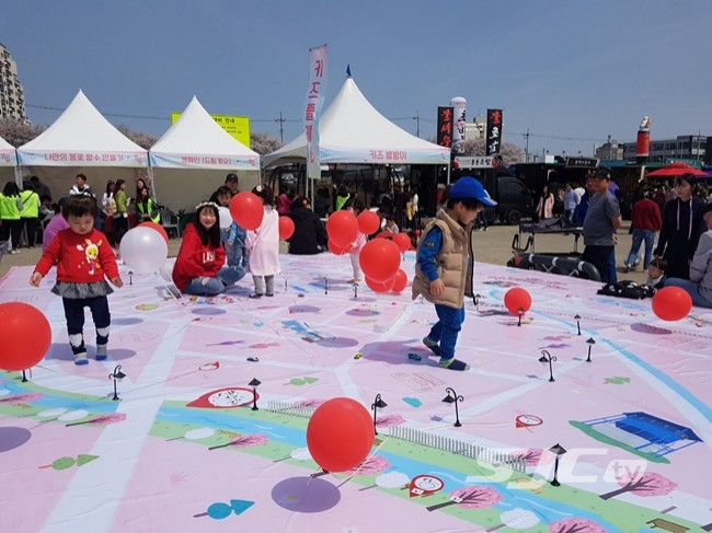 부대행사로 펼쳐진 미션수행 게임 ‘봄꽃 RPG’ 체험과 2.4m 조치원 지도를 꾸미는 공공미술 캠페인, 축제송을 배경으로 군무를 선보이는 댄스 플래시몹도 축제장을 찾은 시민들에게 재미와 감동을 선사했다.