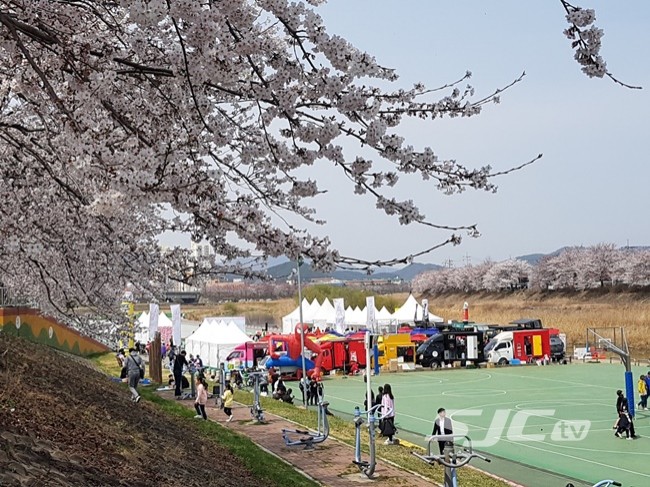 행사 이틀째인 7일에는 모처럼 화창한 봄날을 맞아 조천변 일원의 벚꽃이 일제히 꽃망울을 터뜨리며 시민들의 발걸음을 재촉했다.