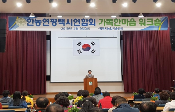 정장선 평택시장이 9일 평택농업기술센터에서 (사)한국농업경영인 평택시연합회 가족 한마음 워크숍 출정식에서 농어민들이 나아가야 할 방향에 대한 특강을 진행했다.