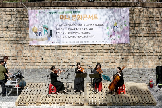 이날 만덕천에서 주제에 겉맞는 벚꽃이 만개한 만덕천에서 주민과 함께한 플래시몹을 시작하여 클래식·어쿠스틱 음악 공연, 오카리나 주민자치프로그램 수강생들의 공연까지 풍성한 볼거리를 제공하였다.