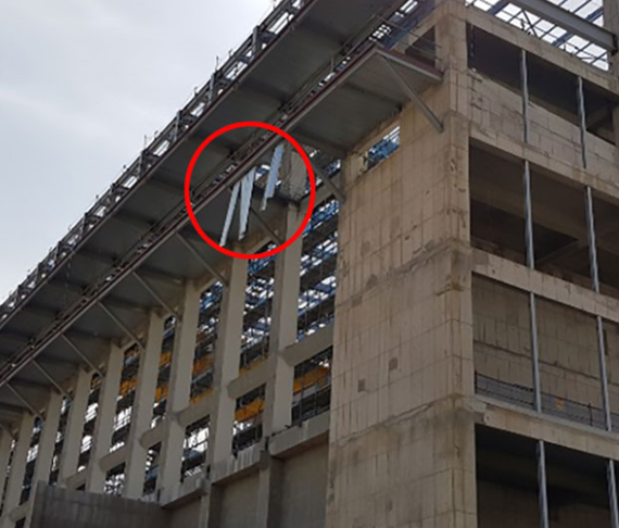 지난달 경북 안동시 환경에너지종합타운 공사 현장에서 인부들이 콘크리트 타설 중 밟고 있는 바닥 강관이 무게에 이겨내지 못하고 무너져 노동자 3명이 20m 아래로 추락했다.