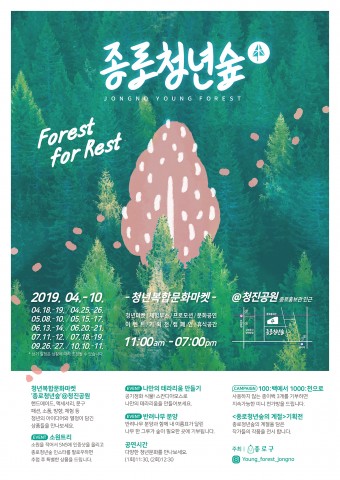 서울시 종로구(구청장 김영종)는 4월 18~19일 청진공원에서 2019 청년복합문화마켓 종로청년숲을 개최한다고 밝혔다.