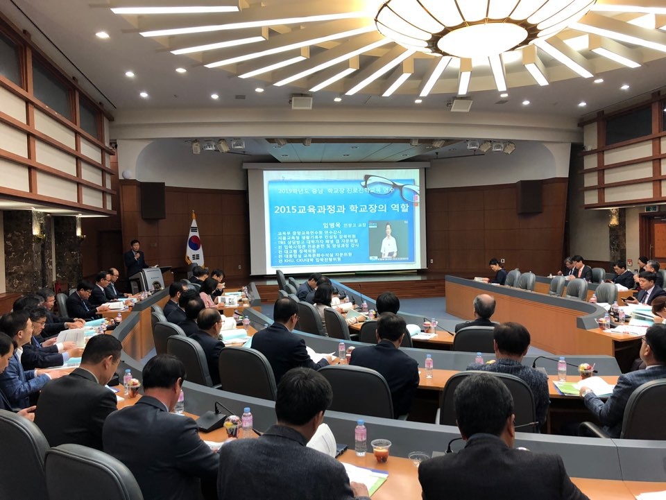 충청남도교육청연구정보원(원장 고미영)은 학생들이 자신의 적성과 꿈을 찾는 진로진학교육이 학교교육과정에 반영될 수 있도록 16일 선문대학교 국제회의실에서 일반고 학교장 연수를 실시했다.