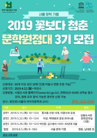 부천시립상동도서관은 오는 5월 15일부터 6월 5일까지 60대 이상 시니어를 대상으로 ‘꽃보다 청춘 문학원정대’ 3기를 운영한다.